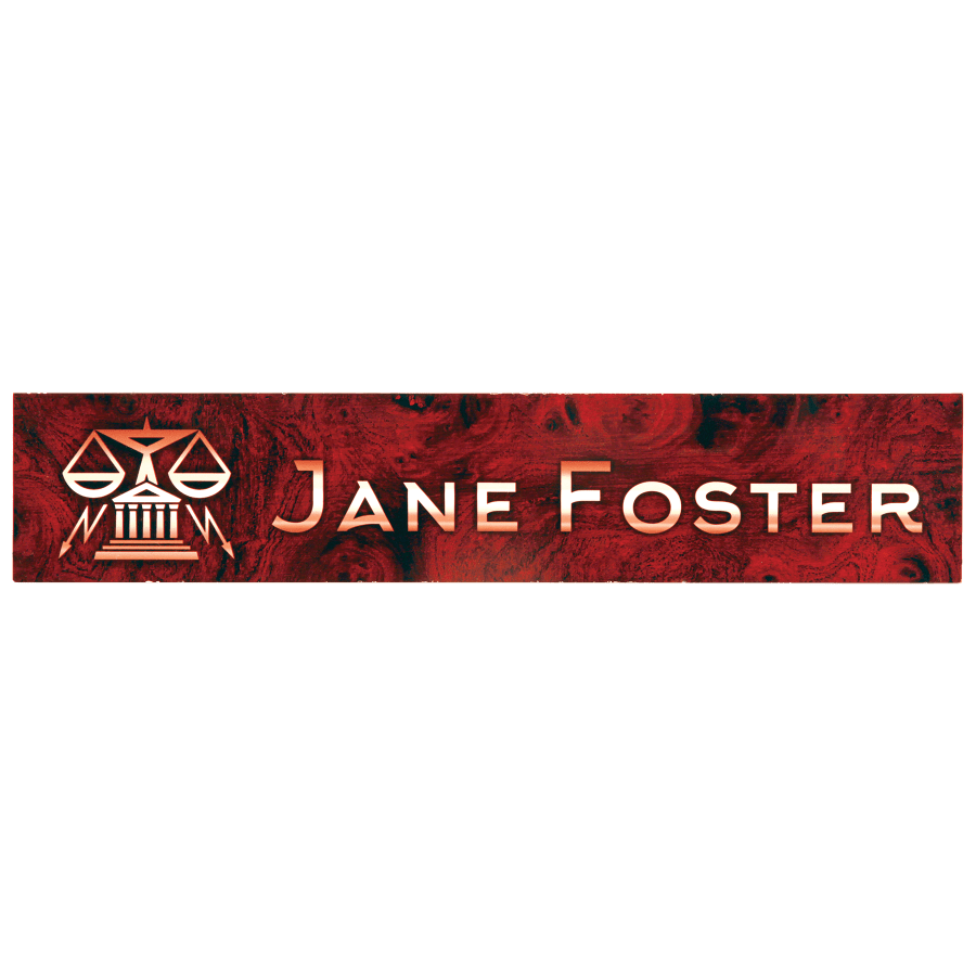 Made in the USA! Hardwood base features slots for business cards and pens. Aluminum nameplate insert (included).
